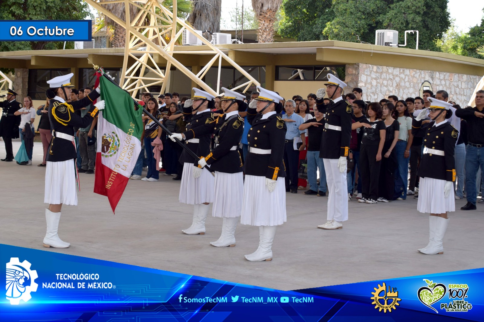 Este lunes por la mañana, la comunidad del Instituto Tecnológico de La Laguna del Tecnológico Nacional de México, se congregó en la velaría para rendir honores a nuestro lábaro patrio, en una ceremonia que reafirmó el sentido de pertenencia, el compromiso institucional y la visión de excelencia que distinguen al ITL. El acto fue conducido por el Departamento de Ingeniería Química, con la participación impecable de la escolta y la banda de guerra, quienes con disciplina y entrega evocaron el valor de nuestros símbolos nacionales.