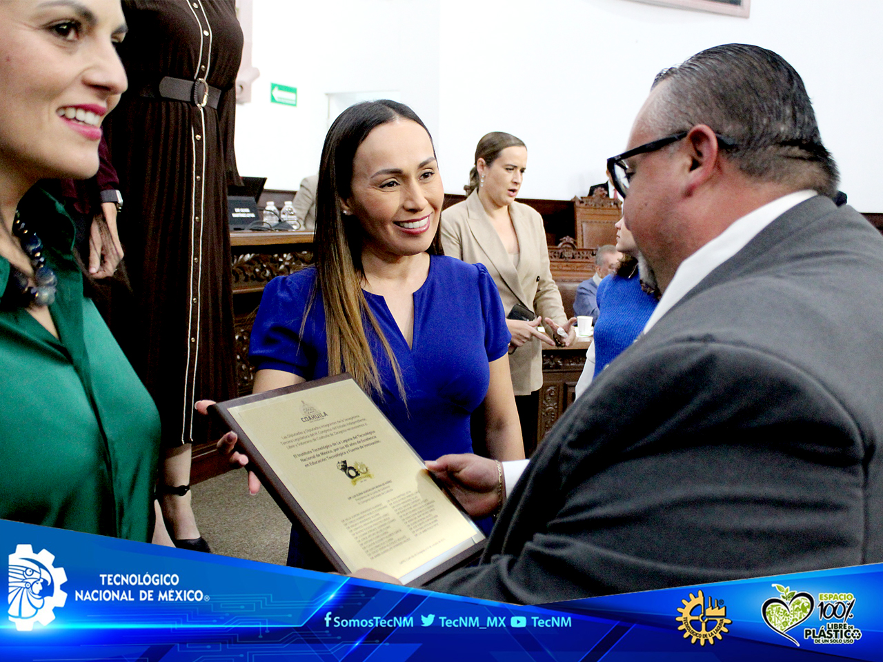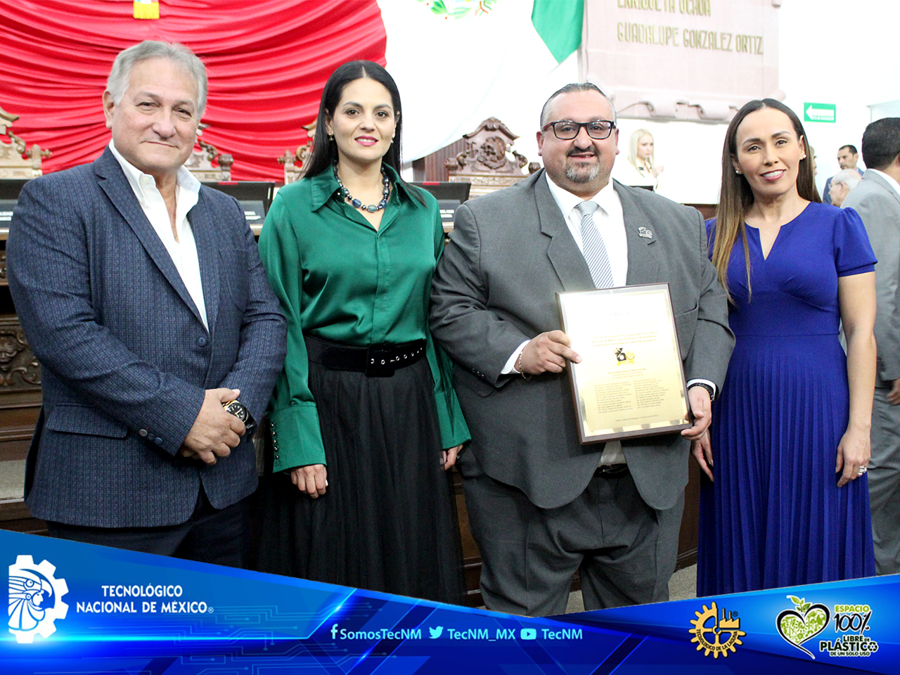 La Diputada Olivia Martínez, en representación de la Sexagésima Tercera Legislatura, realizó un pronunciamiento oficial destacando la trayectoria del Instituto como semillero de talento, motor de transformación y referente nacional en educación tecnológica. En un gesto de alto simbolismo, se entregó a José Omar Saldivar Correa, director del Instituto, un reconocimiento institucional, acompañado por la Presidenta de la Junta de Gobierno del Congreso, la Diputada Luz Elena Guadalupe Morales Núñez, primera mujer en ocupar dicho cargo en más de 200 años de historia legislativa.