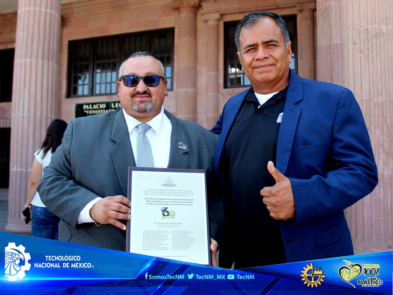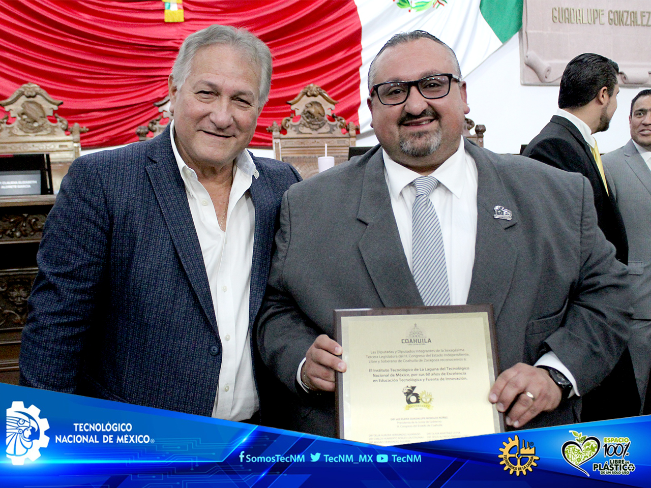 Al recibir el reconocimiento, el Director del Instituto Tecnológico de La Laguna expresó: “Este homenaje nos honra profundamente. Representa no sólo seis décadas de trabajo académico y técnico, sino también el compromiso de nuestra comunidad con el desarrollo de nuestro querido Torreón, de Coahuila y de México. Agradecemos al Congreso del Estado por abrirnos sus puertas y reconocer el valor de la educación tecnológica como motor de transformación social.”