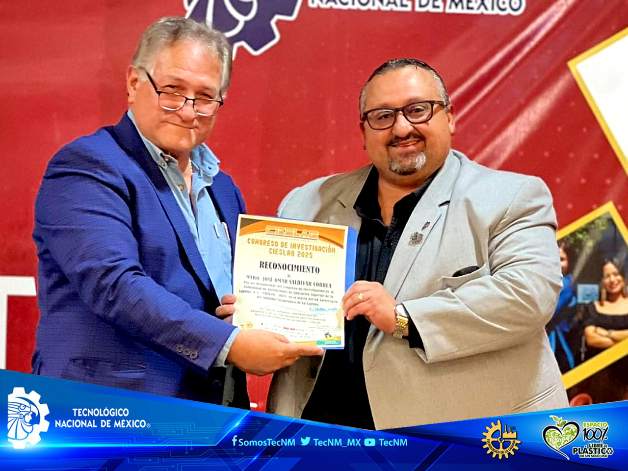 En el cierre del Congreso de Investigación de la Comunidad de Instituciones de Educación Superior Laguna (CIESLAG) 2025, José Omar Saldivar Correa, director del Instituto Tecnológico de La Laguna (ITL) del Tecnológico Nacional de México (TecNM), y secretario de la CIESLAG, presidió la ceremonia final junto a José Dimas López Martínez, director del Instituto Tecnológico Superior de Lerdo (ITSLerdo), en su calidad de anfitriones y organizadores del evento.