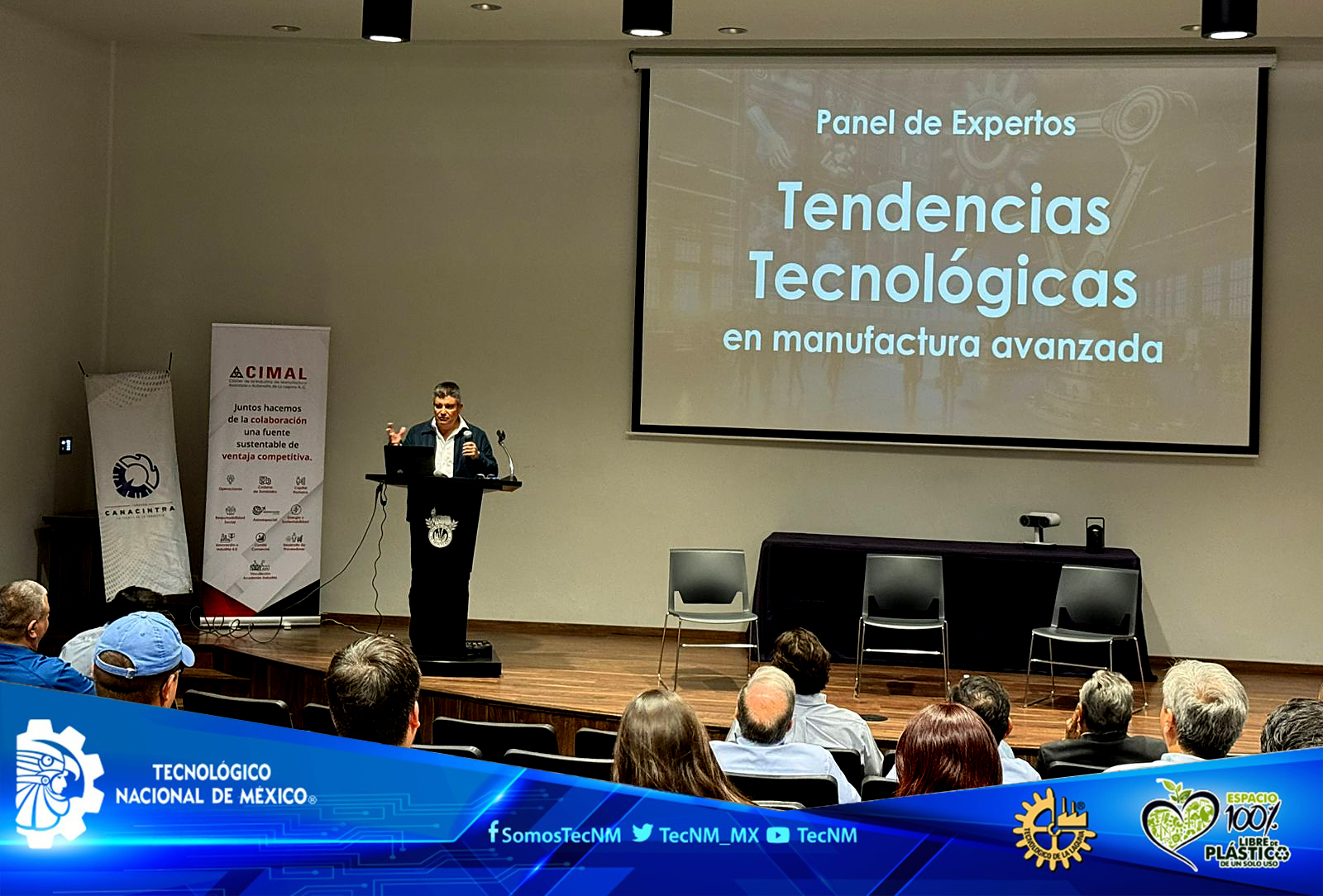 José Omar Saldivar Correa, director del Instituto Tecnológico de La Laguna (ITL), perteneciente al Tecnológico Nacional de México (TecNM), participó en el foro de expertos “Tendencias tecnológicas en manufactura avanzada”, organizado por el Clúster de la Industria de Manufactura Avanzada y Automotriz de La Laguna (CIMAL). Saldivar estuvo acompañado por docentes de nuestra casa de estudios y estudiantes de la carrera de Ingeniería Electrónica.