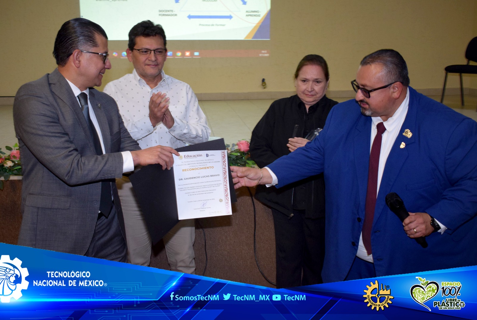 La jornada inició con una ceremonia inaugural que contó con la distinguida presencia del Dr. Gaudencio Lucas Bravo, Secretario Académico, de Investigación e Innovación del TecNM, quien ofreció un mensaje institucional, realizó la declaratoria inaugural y dictó la conferencia magistral “Modelo Educativo del TecNM”. En ella, destacó los fundamentos ontológicos, epistemológicos y axiológicos que sustentan esta transformación educativa, orientada a la equidad, la pertinencia y el compromiso social.
