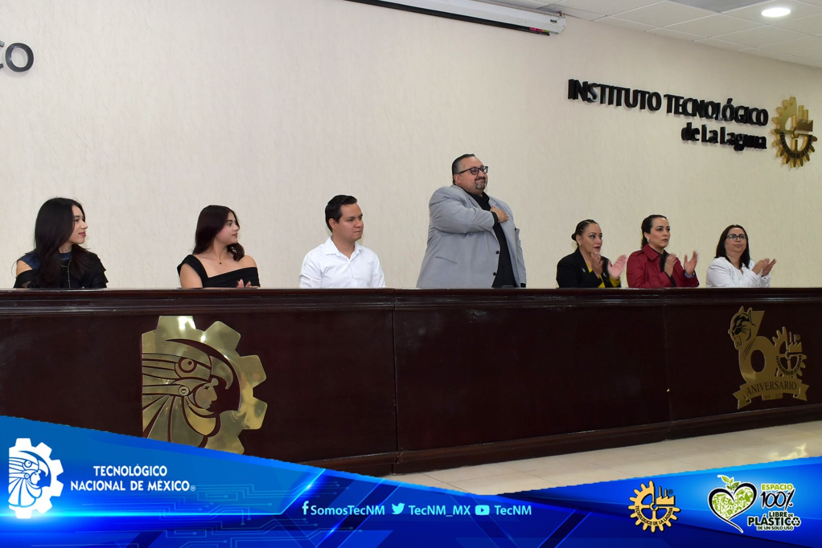 El presídium estuvo conformado por el director del ITL, Mtro. José Omar Saldivar Correa, la jefa del Departamento de Ciencias Económico Administrativas, Mtra. Erika García Graciano, las docentes Mtra. Cinthia Ramírez Woo y Mtra. Ana Poblano Ojinaga, así como el presidente del CESA ITL, David Oswaldo Maldonado Serrano.