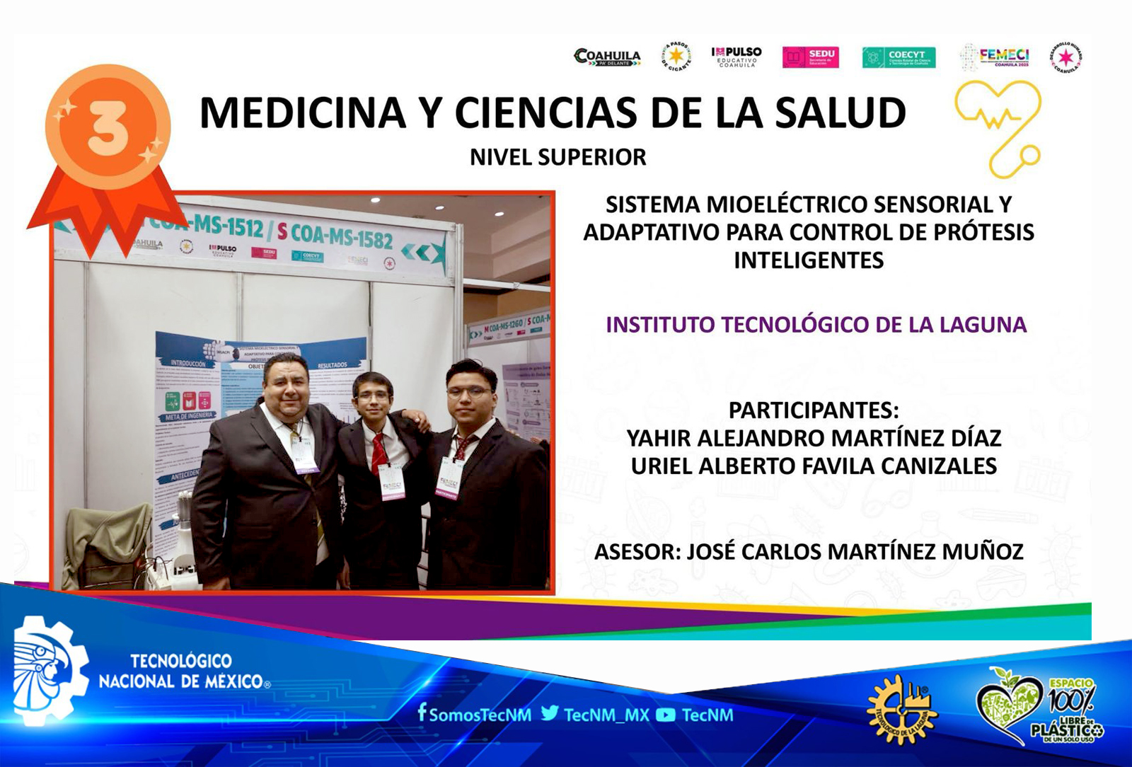 Bajo la asesoría del Mtro. José Carlos Martínez Muñoz, docente del área de Eléctrica–Electrónica, el equipo obtuvo el Tercer Lugar en la categoría Medicina y Ciencias de la Salud con el proyecto:
