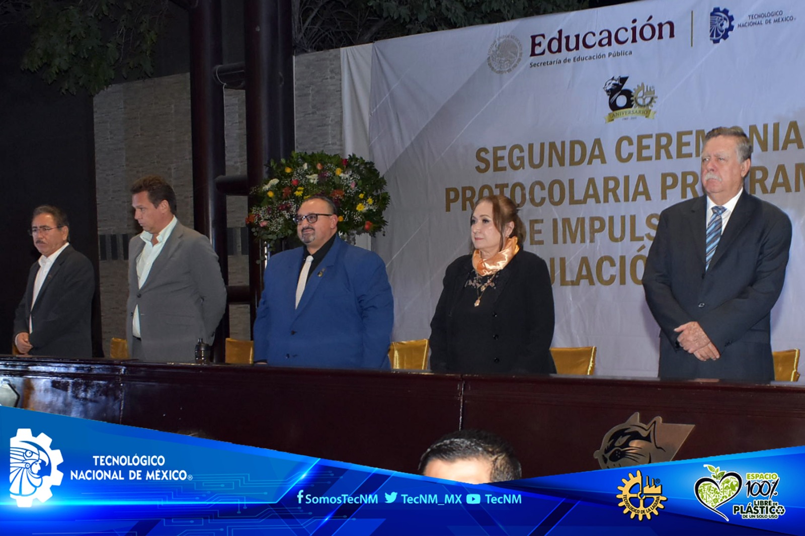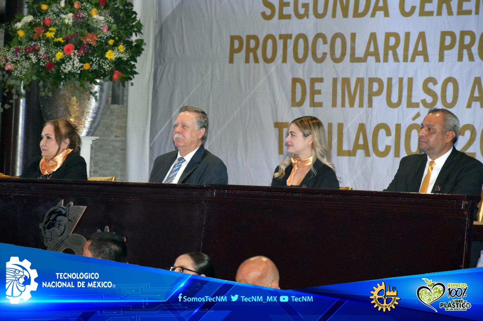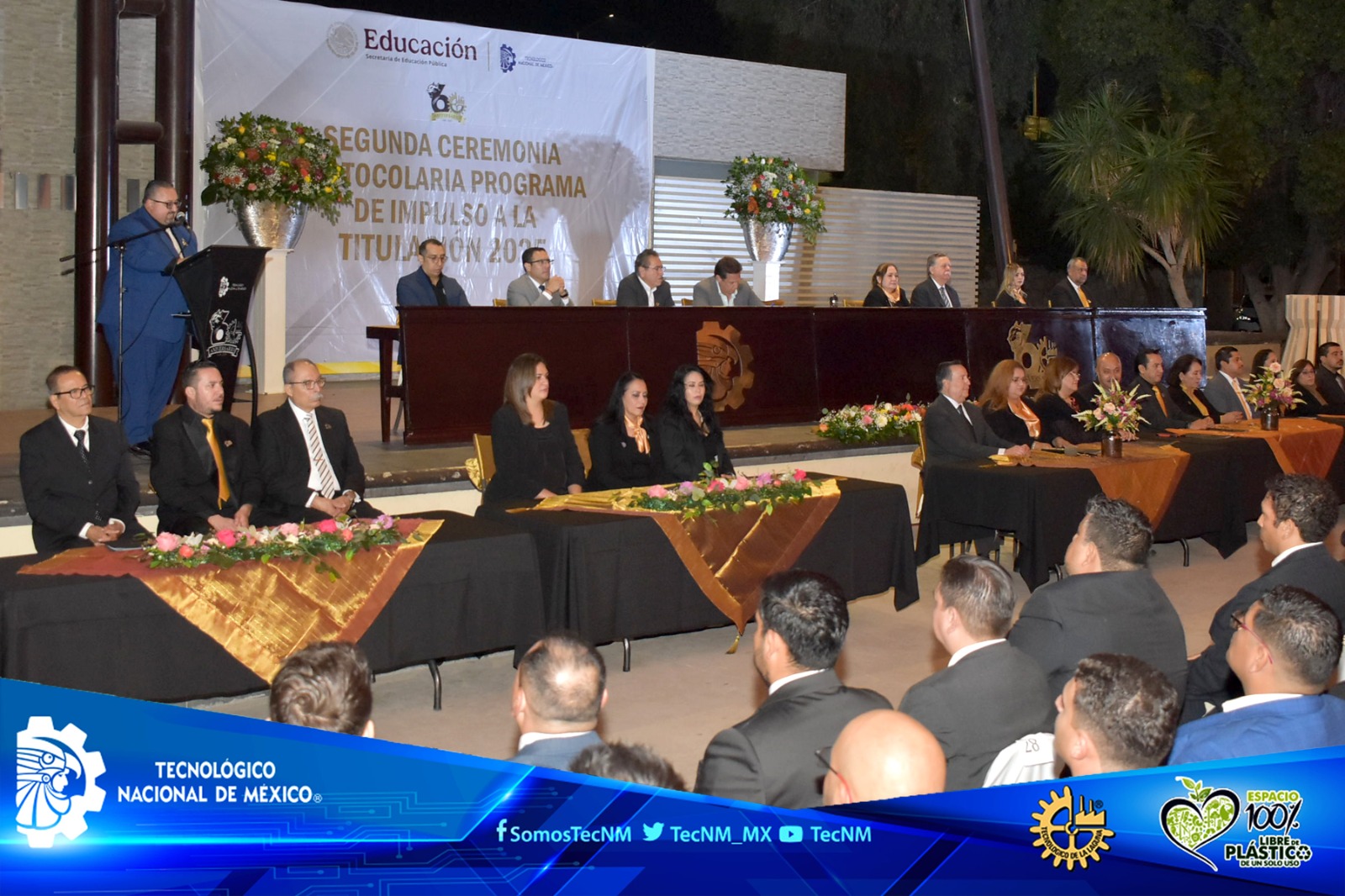 La ceremonia fue encabezada por un presídium integrado por el Director del ITL del TecNM, Ing. José Omar Saldívar Correa; el Ing. Hugo Dávila Prado, encargado del despacho de la Secretaría de Desarrollo Regional de La Laguna en representación del gobernador de Coahuila, Manolo Jiménez Salinas; el presidente del Consejo de Vinculación del ITL del TecNM, Ing. Donato Gutiérrez Aguirre; el Presidente de Canacintra Torreón, Pablo García Chacón;la Subdirectora Académica, Mtra. Alma Leticia Ramos Ríos; el Subdirector de Servicios Administrativos, CP. Raúl Martínez Mojica; la Jefa de Desarrollo Académico, Mtra. Elizabeth Ramírez Benavides; el Jefe de División de Estudios Profesionales, Mtro. Claudio César Pedroza Sifuentes; y el Jefe de Servicios Escolares, Mtro. Francisco Javier Castillo Olvera.