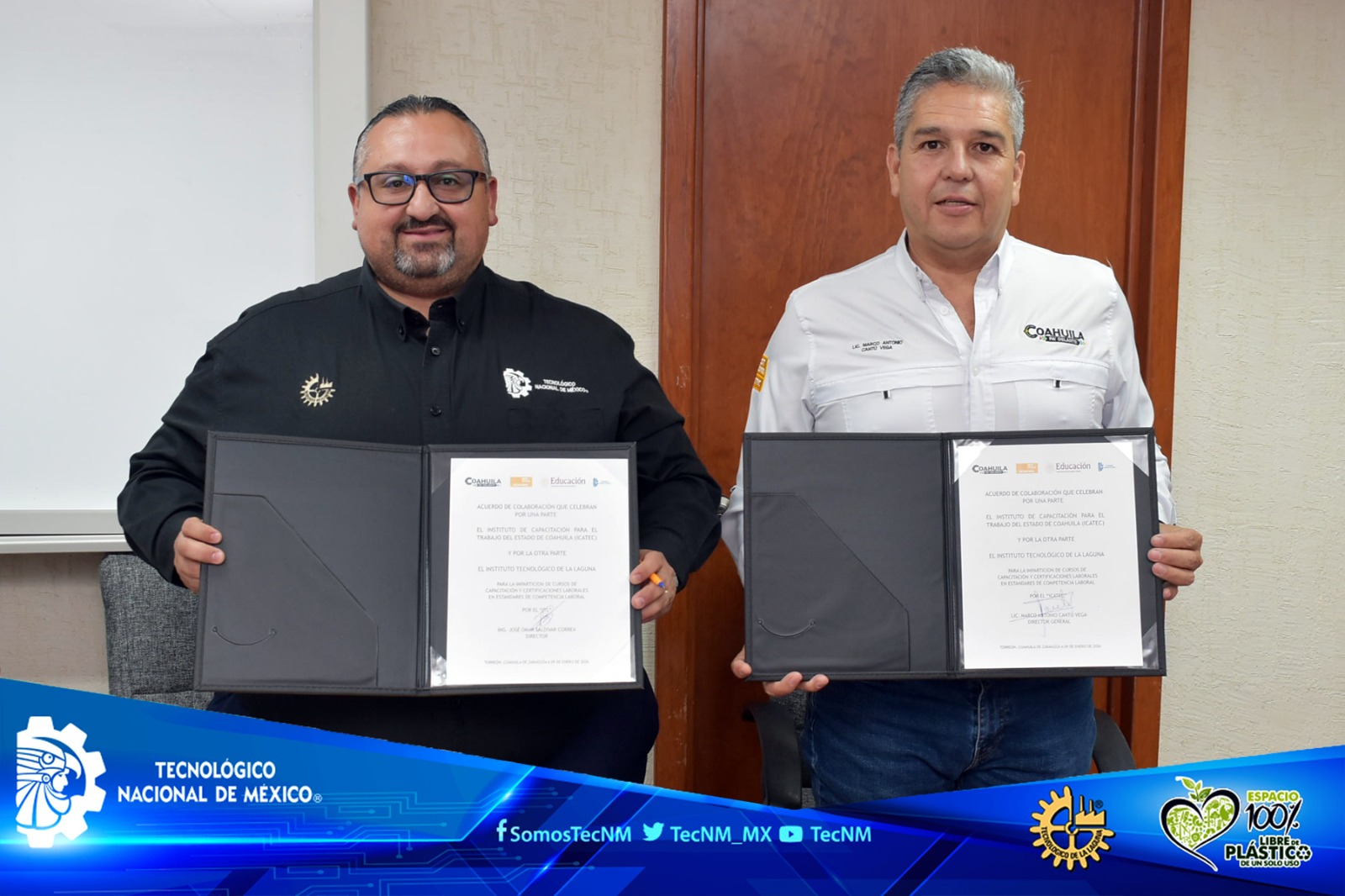 El Instituto Tecnológico de La Laguna, perteneciente al Tecnológico Nacional de México (ITL del TecNM) y el Instituto de Capacitación para el Trabajo del Estado de Coahuila de Zaragoza (ICATEC) llevaron a cabo la firma de un convenio de colaboración que fortalece la formación académica y profesional de los estudiantes, atendiendo las demandas del sector empresarial y las necesidades de capacitación de la sociedad.