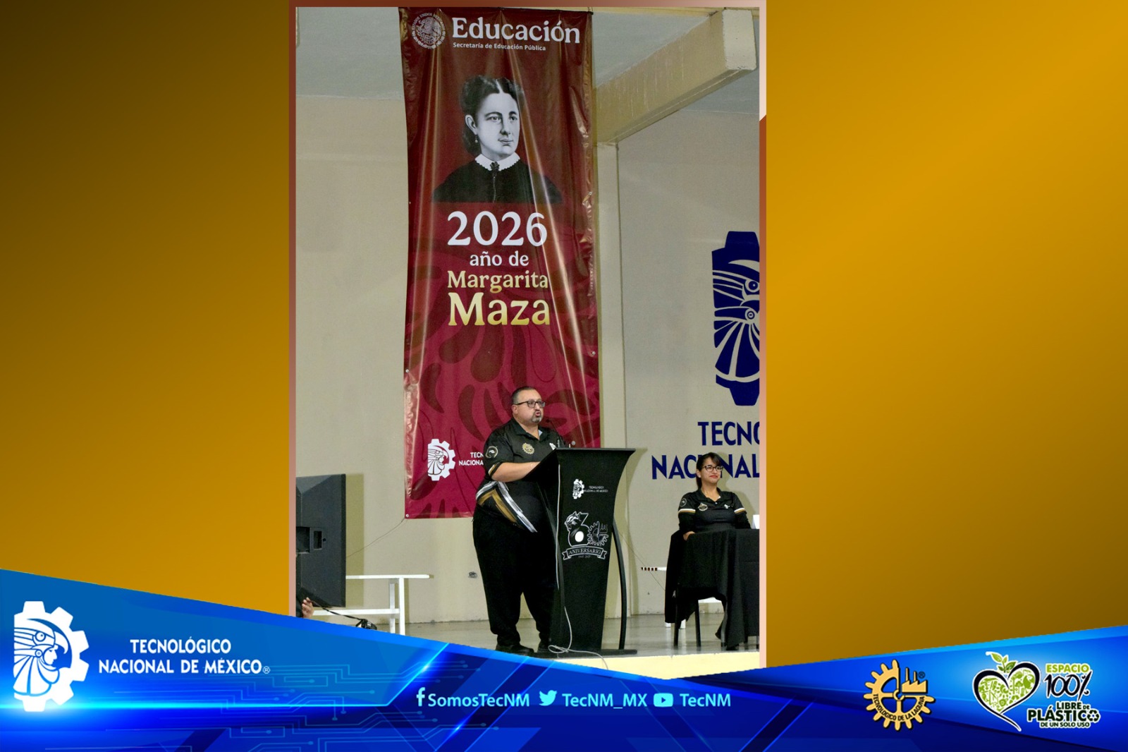 Asimismo, transmitió el saludo del Prof. Ramón Jiménez López, Director General del Tecnológico Nacional de México, quien invitó a la comunidad a seguir fortaleciendo la excelencia académica, la innovación y el compromiso social que caracterizan a la gran red de tecnológicos en todo el país.