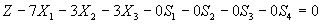 En esta tabla la función objetivo se expresa como una ecuación igualada a cero. En esta tabla existe la columna variable básica que contiene la identificación de cuales son las variables básicas de la solución actual. Las variables no básicas actuales no aparecen en esta columna y sus valores son cero.