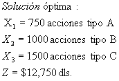 Suponga que usted es el presidente de una firma de inversiones personales y que maneja cierta cartera de valores de cierto número de clientes. Un cliente nuevo ha solicitado recientemente que la firma le maneje una cartera de $100,000. Al cliente le gustaría limitar su cartera a una combinación de las 3 acciones que se muestran en al figura. Determinar cuantas acciones de cada tipo debería comprar para maximizar el beneficio total anual estimado.