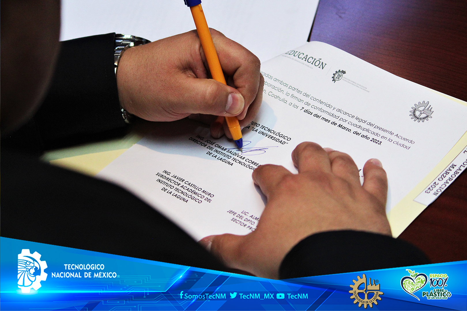 El TecNM Campus La Laguna y el Centro de Bachillerato Tecnológico Industrial y de Servicios No. 4, firmaron un convenio de colaboración para blindar relaciones académicas, sociales y de servicio entre ambas instituciones, el martes 07 de marzo de 2023 en punto de las 12:30 horas dentro de la Sala de Juntas A del Instituto.