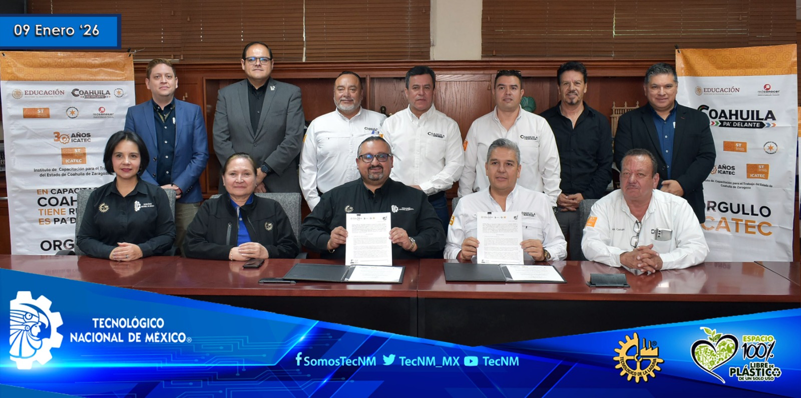 El Instituto Tecnológico de La Laguna, perteneciente al Tecnológico Nacional de México (ITL del TecNM) y el Instituto de Capacitación para el Trabajo del Estado de Coahuila de Zaragoza (ICATEC) llevaron a cabo la firma de un convenio de colaboración que fortalece la formación académica y profesional de los estudiantes, atendiendo las demandas del sector empresarial y las necesidades de capacitación de la sociedad.