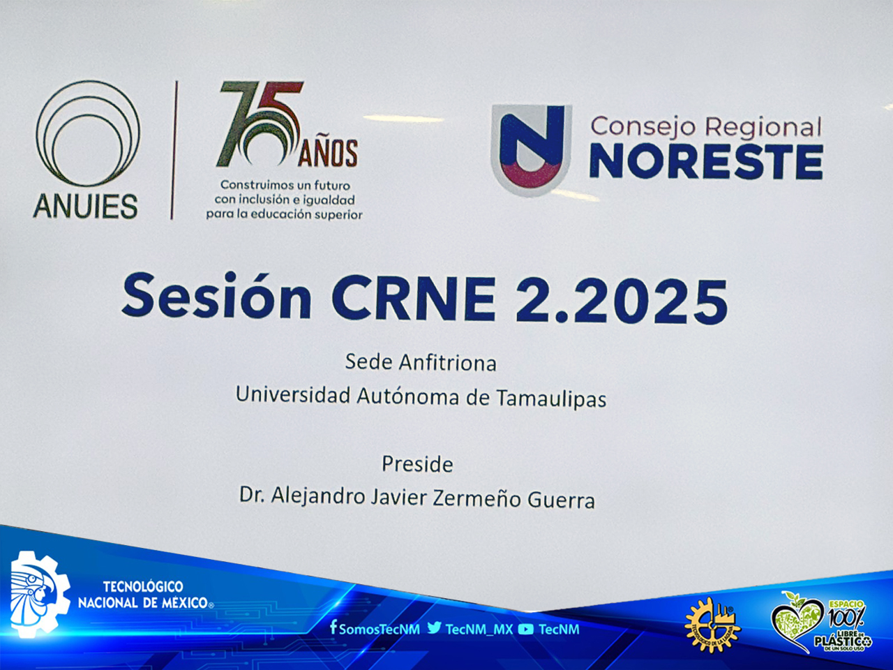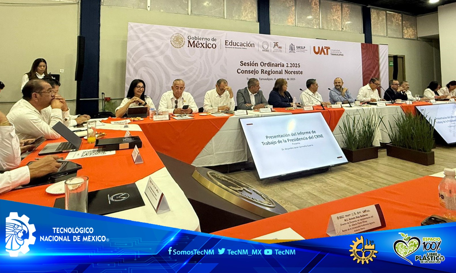 El Instituto Tecnológico de La Laguna del Tecnológico (ITL) Nacional de México (TecNM), tuvo el honor de participar en la Sesión Ordinaria 2.2025 del Consejo Regional Noreste (CRNE) de la Asociación Nacional de Universidades e Instituciones de Educación Superior (ANUIES), celebrada en modalidad presencial en la Universidad Autónoma de Tamaulipas, con sede en la ciudad de Tampico, Tamps.